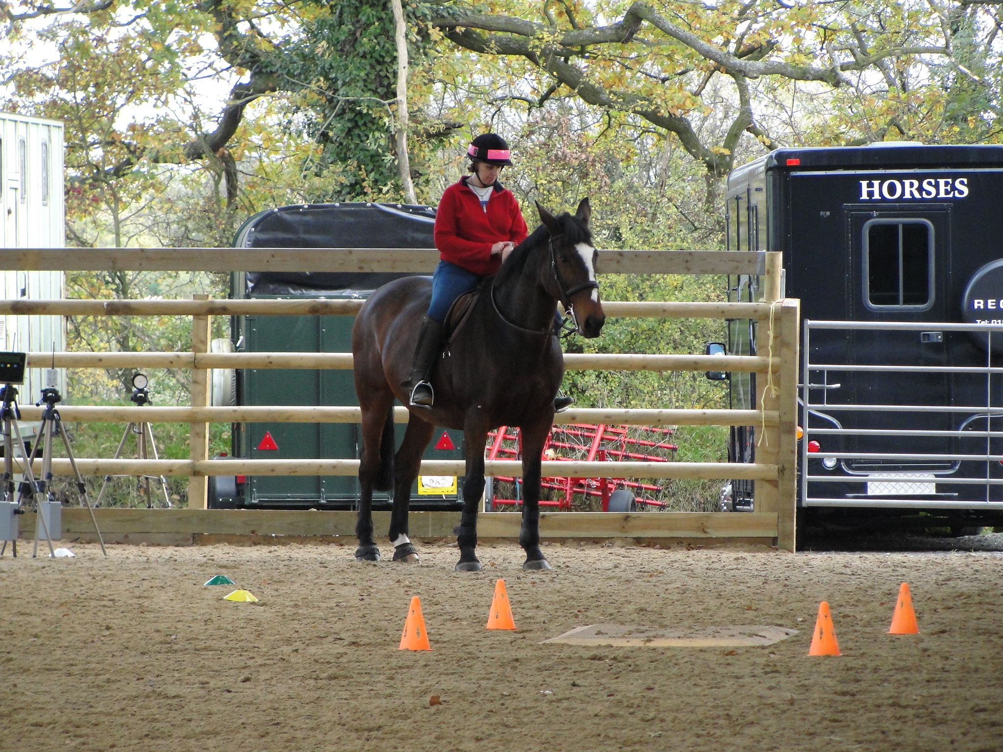 Every competition includes up to 16 obstacles, which may be spread in the middle of a field. The obstacles are chosen from a master list and will vary slightly from venue to venue, as organisers make use of natural features such as hedges and ditches. Our indoor session consisted of a corridor, an S-bend, low-hanging branches, bending poles, a ditch to jump, a bridge and mounting and immobility exercises.