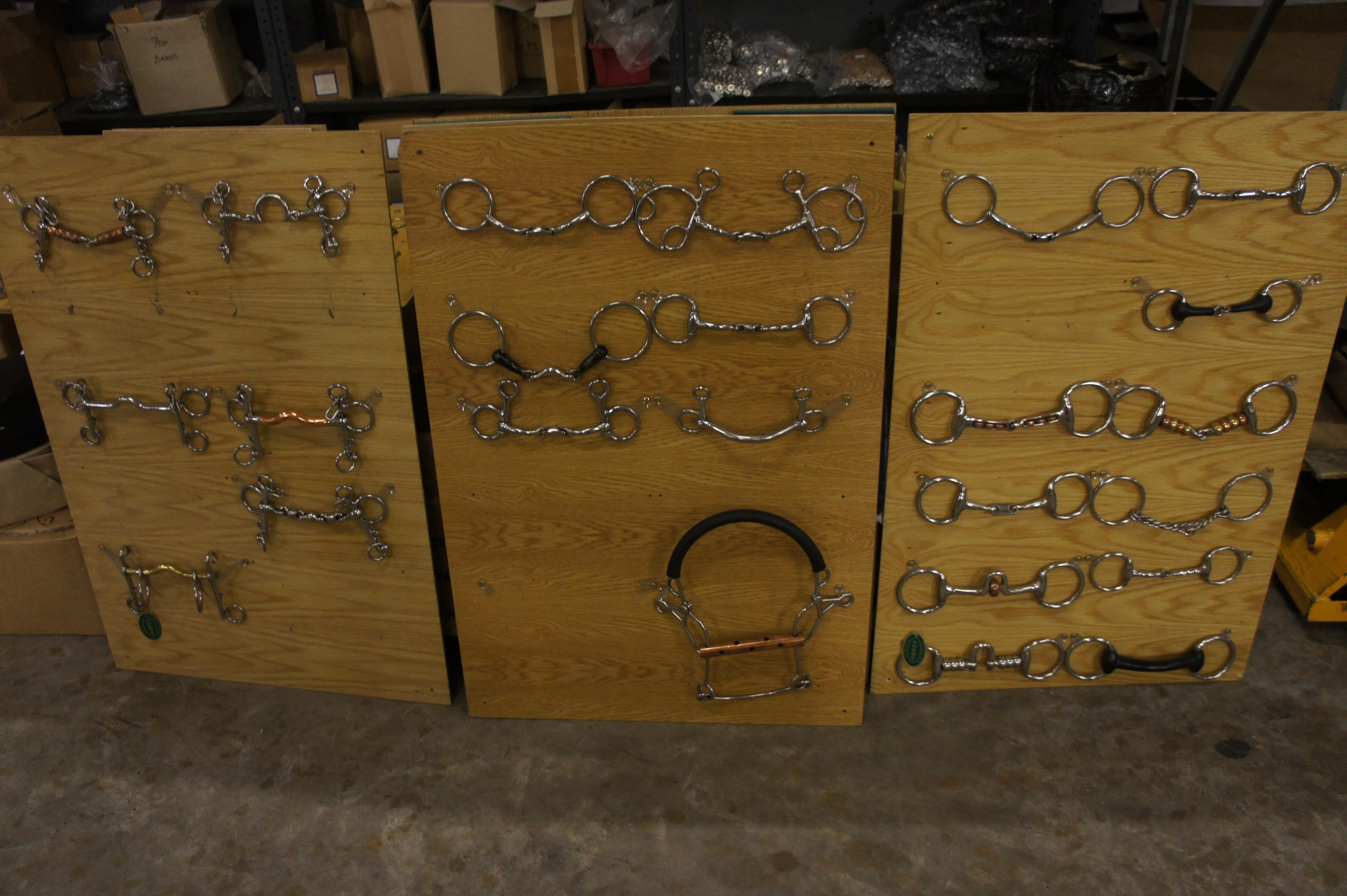 “We start with straight rods to make the mouthpieces, then they’re heated, bent, cut, drilled and stamped. We then fix the mouthpiece to the shanks, and the whole thing is polished to remove sharp edges,” he explains. “I did a lot of aircraft work for the government, so I’m used to precision work – all the parts of every product are precision made, balanced and made to 1/1000th of an inch accuracy. Just a plain pair of spurs has 24 different parts, and some of the bits have up to 30, and each one is made with care and attention to detail.”