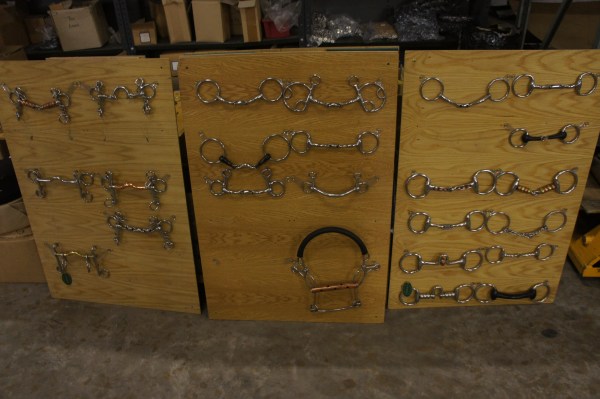 Tom’s company makes bespoke, handcrafted bits, spurs and other items. Although the majority of his bits are for Western riding, he also makes a selection of English riding and polo bits. He’s also got a number of what he calls ‘crossover’ bits, i.e. Western bits introduced to the English market, and vice versa. Customers can build their own bit by selecting a mouthpiece and shanks (curbs) from a huge range.