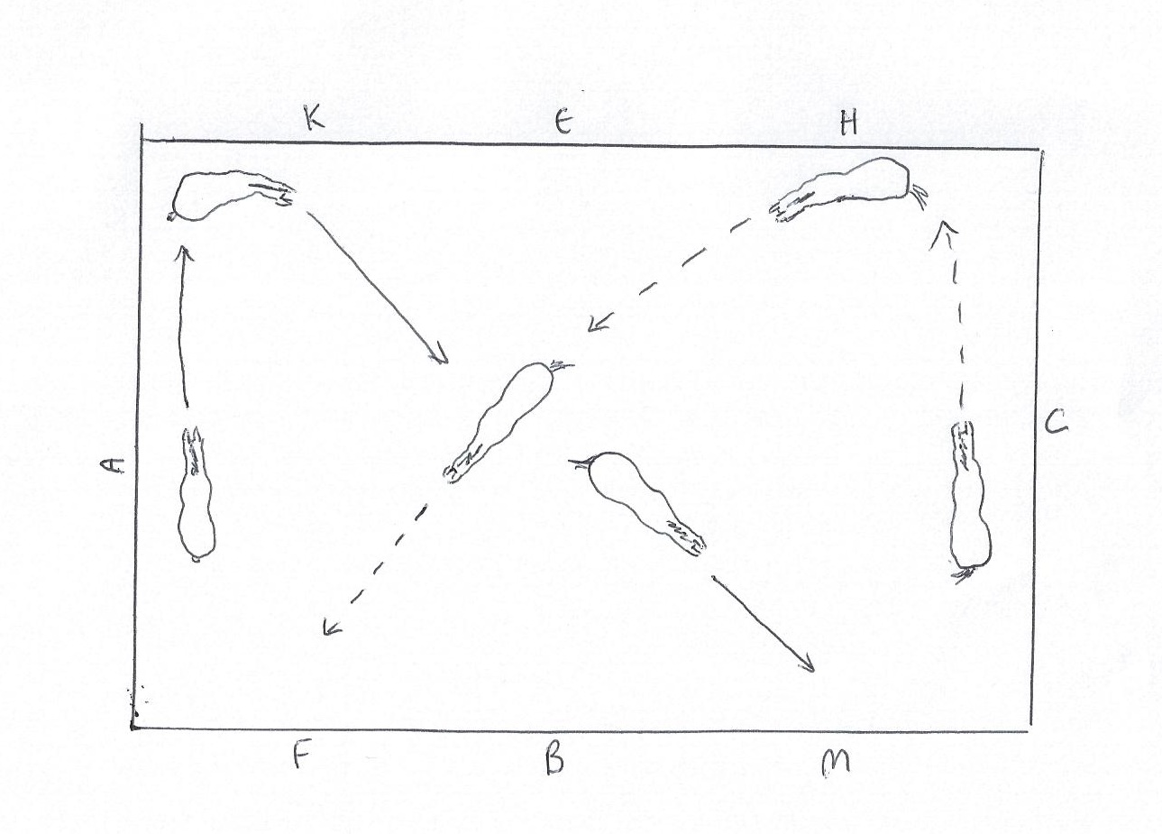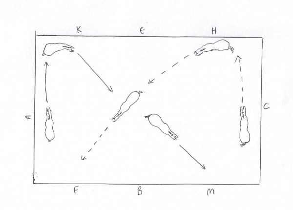 - Turn across the short side of the arena side by side