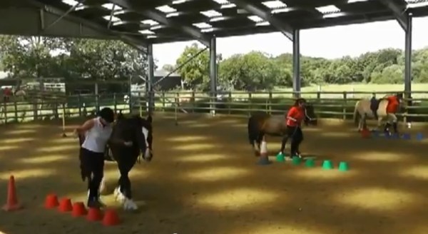 - Teach your horse/pony to stand still whilst a pony comes towards them. This is crucial for when one team member completes their go and rides back towards another with a baton or piece of equipment. The pony waiting to go mustn’t be scared of the other pony nor be aggressive. Stand your pony at a starting line. Then have someone ride towards you and then past you to familiarise your pony.